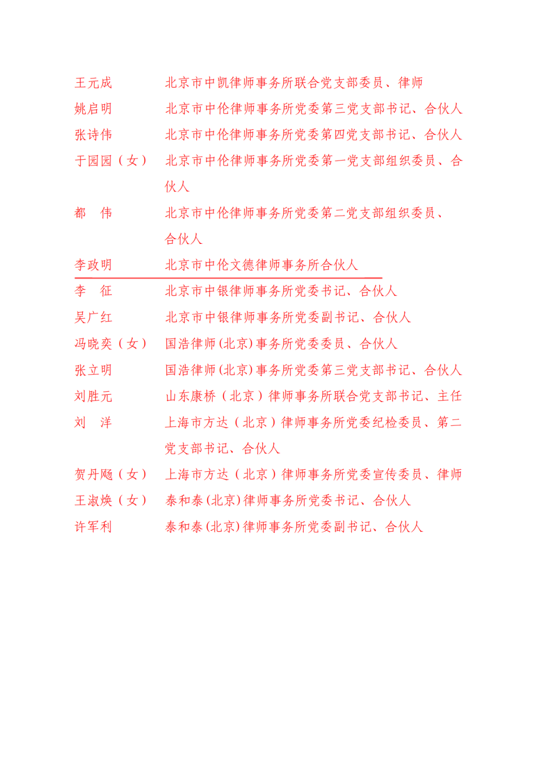 北京中伦文德律师事务所执委、高级合伙人李政明律师荣获“2023-2024年度朝阳区律师行业优秀共产党员”荣誉称号。