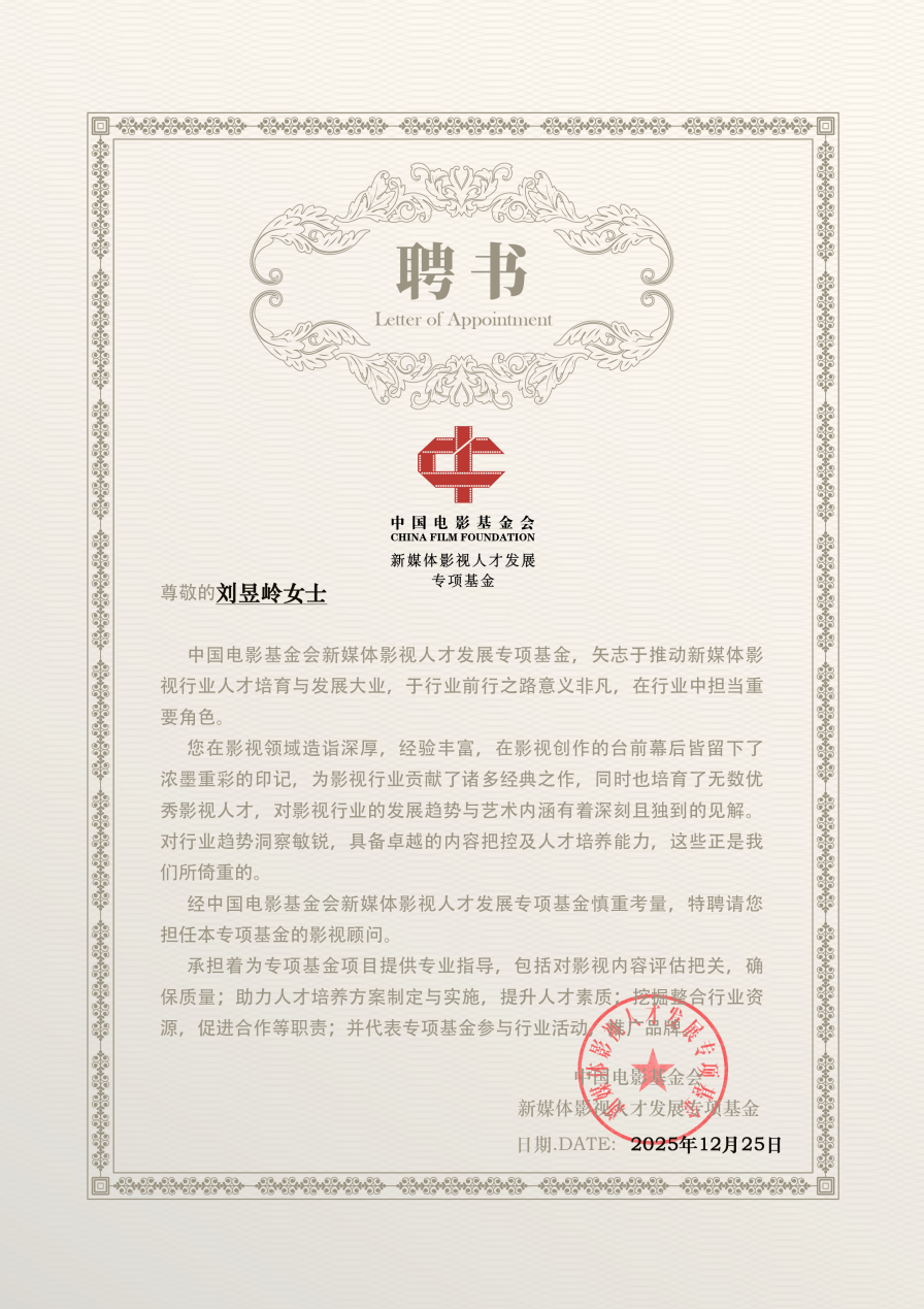 近日,北京市中伦文徳律师事务所合伙人刘昱岭律师收到中国电影基金会新媒体影视人才发展专项基金的聘书,受聘担任中国电影基金会新媒体影视人才发展专项基金影视顾问。