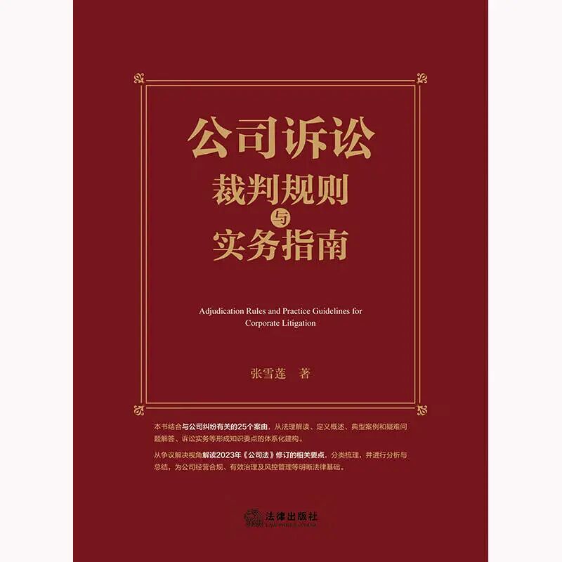 中伦文德律师事务所资深律师张雪莲倾力撰写的两部重量级著作——《公司诉讼-裁判规则与实务指南》与《破产衍生诉讼-裁判规则与实务指南》。这两部作品均于2025年由法律权威出版机构——法律出版社正式出版发行。旨在构建理解框架,厘清裁判逻辑,提供法理、案例支撑的系统性实务指南,致力于成为每一位处理复杂商事纠纷法律人的案头必备。