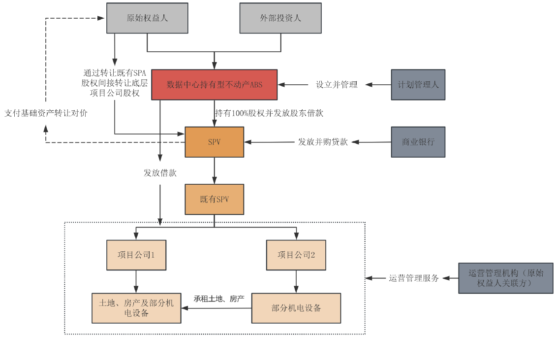 新设SPV为配置资金,以底层数据中心项目抵押资产向商业银行申请并购贷款,用于受让既有SPV的股权。