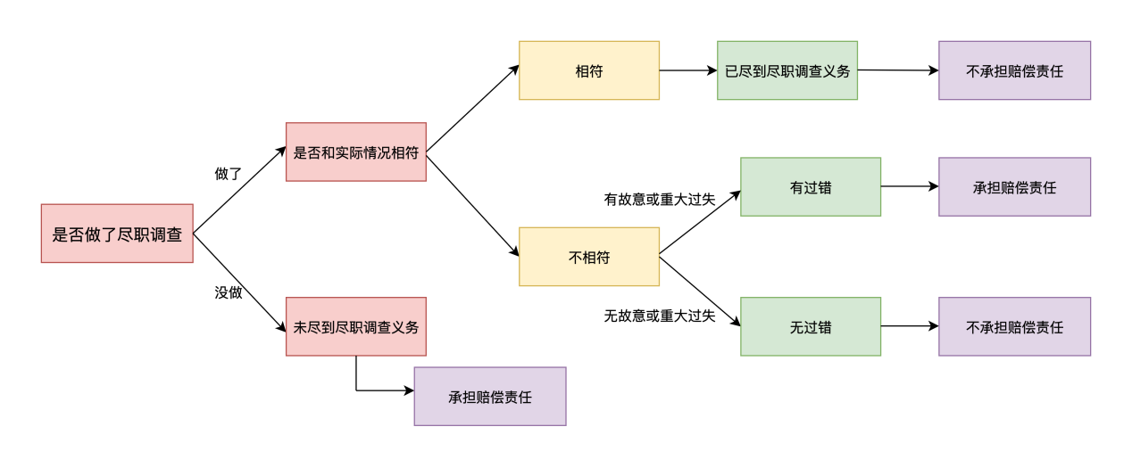在法院对资产管理机构“尽职调查义务”的审查过程中,首先,在形式上,审查资产管理机构是否举证《尽职调查报告》等证据证明己方已经尽到尽调义务;其次,在实质上,审查尽调报告等文件中调查的第三方信息是否与实际情况相符,若与实际情况相符,则认定资产管理机构已尽到尽职调查义务;若与实际情况不符,则进一步审查资产管理机构是否存在过错,或过错大小几何。若资产管理机构不具有了解到相关风险的可能性或者了解可能性较小,则综合考虑具体情况酌定资产管理机构过错程度,并根据过错大小酌定其承担责任的程度。