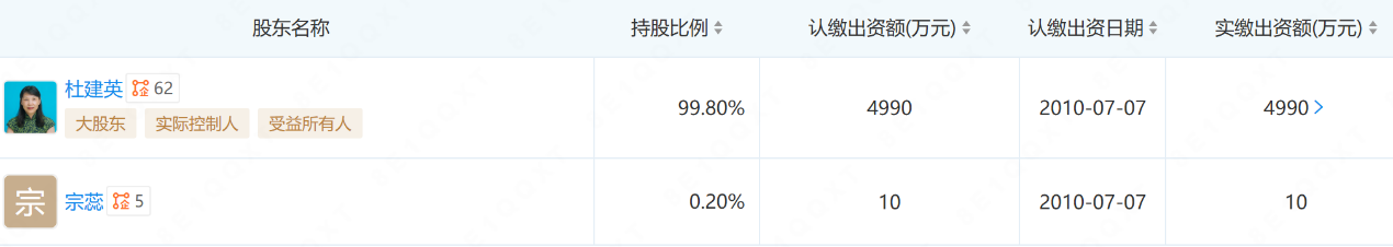 杜建英持有三捷集团99.8%的股权,担任执行董事兼总经理,为妥妥的实际控制人。据网络资料显示,宗蕊为宗庆后之妹。