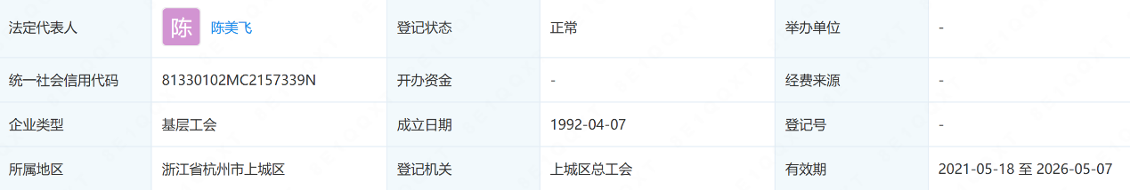 经查询企查查,娃哈哈工会的基本信息是这样的: