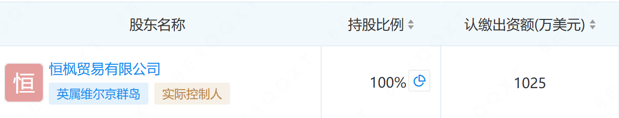网络信息显示,恒枫贸易有限公司为宗馥莉投资控股的境外公司。
