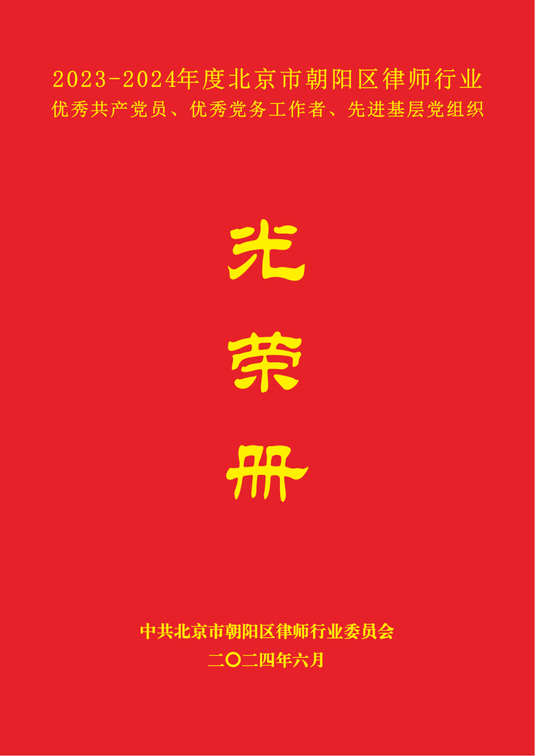 为深入学习贯彻习近平总书记关于“努力做党和人民满意的好律师”重要指示精神,响应并落实司法部党组提出的“五点希望”,充分发挥先进典型的示范引领作用,鼓励全区律师规范执业、勇于担当、无私奉献。在隆重庆祝中国共产党成立103周年之际,中共北京市朝阳区律师行业委员会研究作出“关于表彰2023-2024年度优秀共产党员、优秀党务工作者、先进基层党组织的决定”。