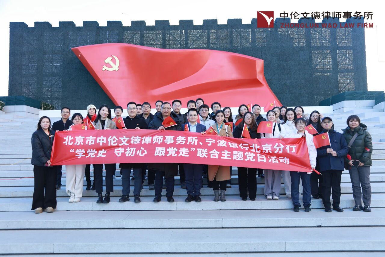为深入学习贯彻党的精神,传承红色基因,赓续红色血脉,2024年11月28日,北京市中伦文德律师事务所党组织与宁波银行北京分行党组织开展“学党史 守初心 跟党走”联合主题党日活动。本次活动由事务所执委会主任李敏同志、执委会执委李政明同志牵头组织,方登发、庞慧仙、曹春芬、张鑫、蒲攀宇、赵鹏丽、陶涛、费发成、庞振寰、黄盛楠、张恒、唐晓韬、田亚男、刘祺、张容棵、夏玉峰等党员以及宁波银行北京分行党员代表共同参与,数十位党员齐聚中国共产党历史展览馆,通过沉浸式体验,共同回顾了党的光辉发展历程,感悟党百年奋斗的艰辛与辉煌。