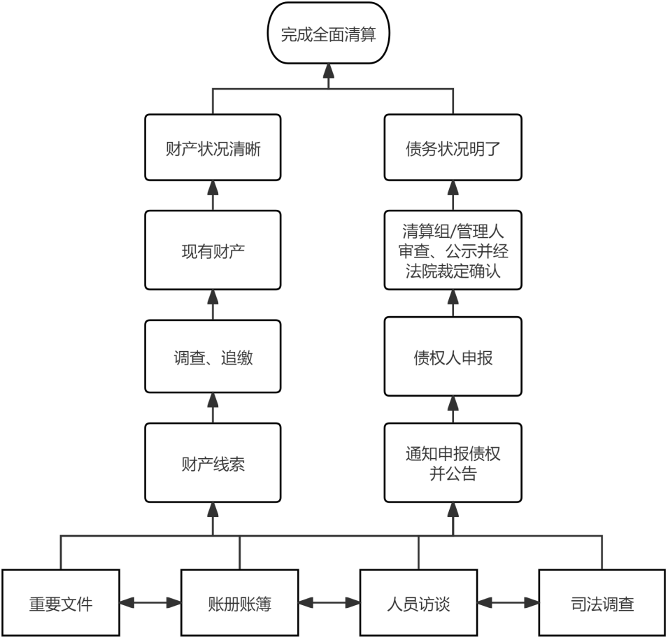 从另一个角度而言,何种案件属于“能够清算”的案件,在实际中,无论是在强制清算亦或者破产清算程序内,对于清算组或管理人,如何完成法院指定的清算工作,无非从以下两个方面进行考虑:一是公司财产的厘清、处置与分配,二是公司债务的核查、认定与清偿。